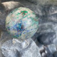 La QUANTUM QUATRO,  Cette sphère et tout juste magnifique et rare. Elle est polie/dégrossie, on vois et sent des creux et des bosses. De qualité extra, c’est une pierre très rare, que l’on ne trouve presque plus.