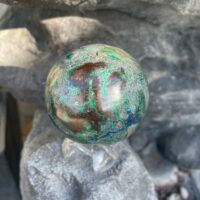 Cette pierre est composée en général de Shattuckite, Chrysocolle, Dioptase, Malachite, et née dans un écrin de quartz fumé..